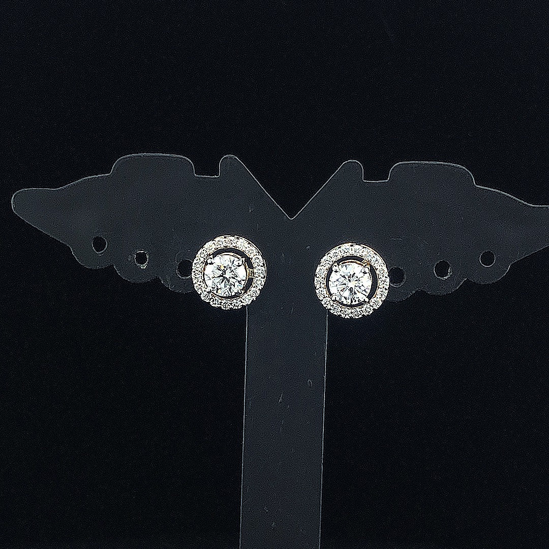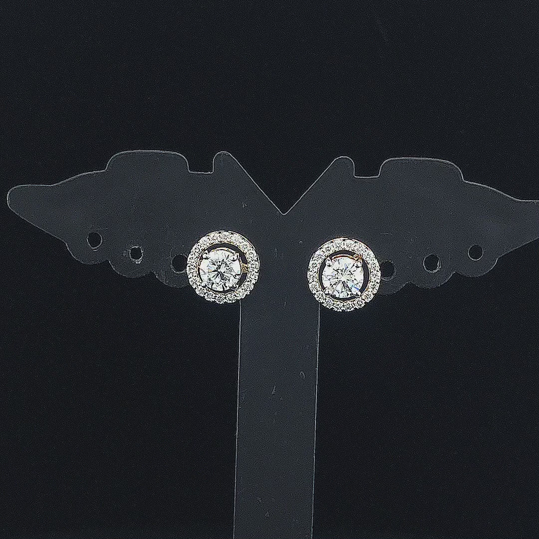 0.90cts Brilliant Round Solitaire Halo Diamond Earring