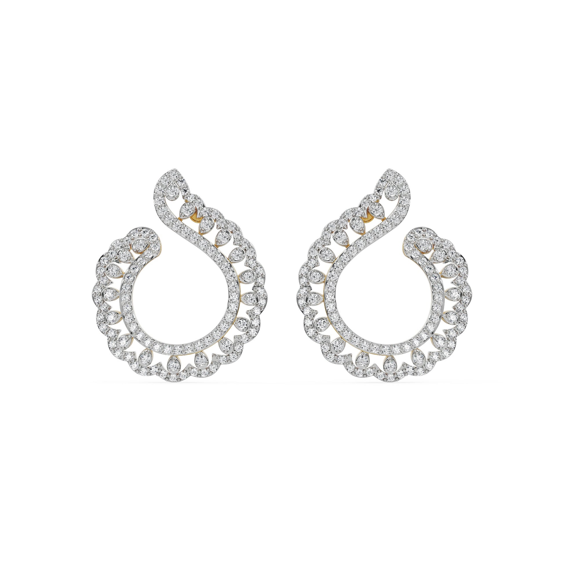 Feather Shaped Diamonds Stud Earrings