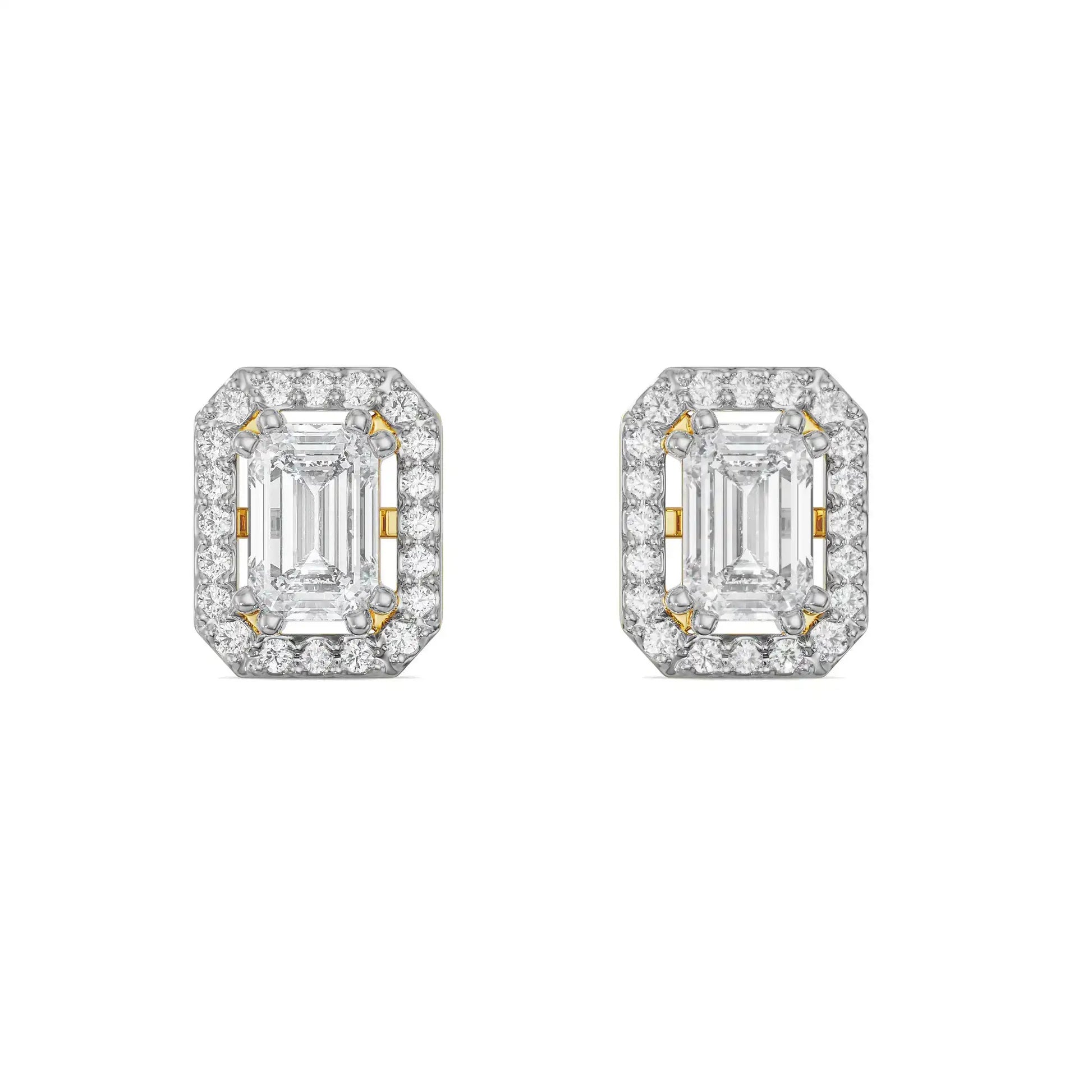 Shimmering Halo Emerald Cut Diamond Stud Earrings